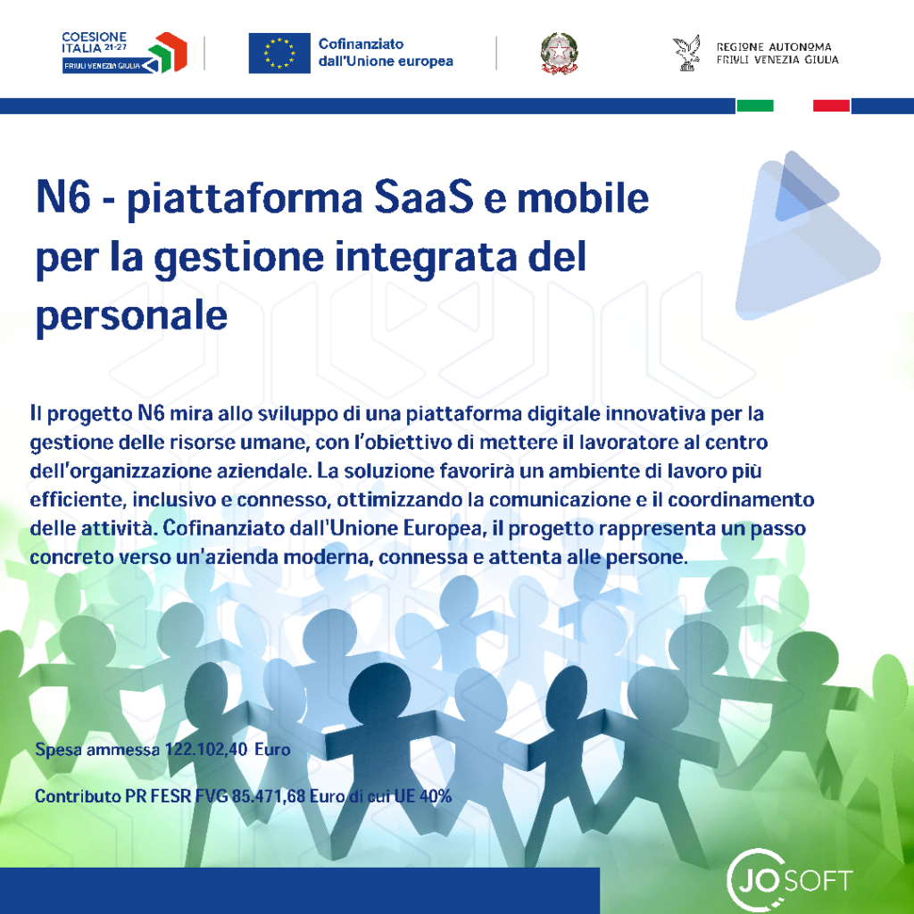 Il progetto N6 punta sull’innovazione nella gestione delle risorse umane: una piattaforma digitale umano-centrica per imprese moderne e inclusive. Cofinanziato da PR FESR FVG 2021–2027.